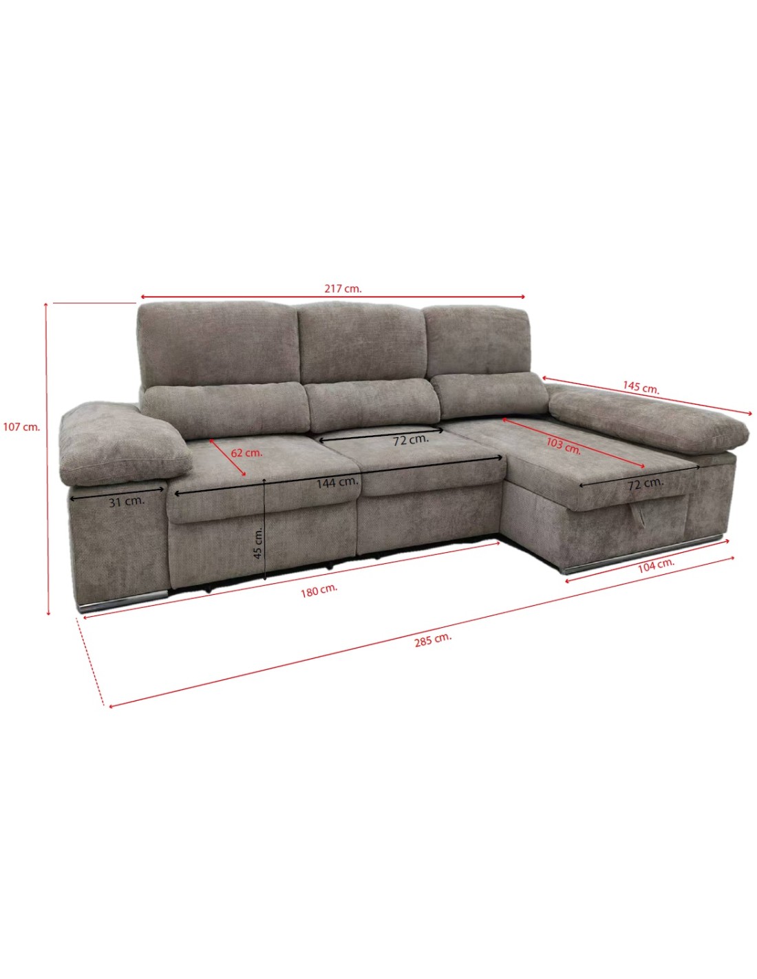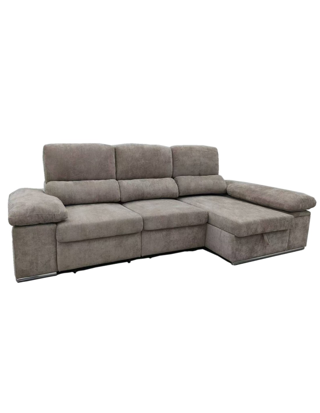 ¡SÚPER PROMOCIÓN! Chaiselongue 280 cm, es un modelo básico y muy económico, con una relación calidad-precio increíble. Está disponible a elegir en AZUL, GRIS CLARO y MARRÓN. El brazo es reversible. REGALO 2 COJINES.