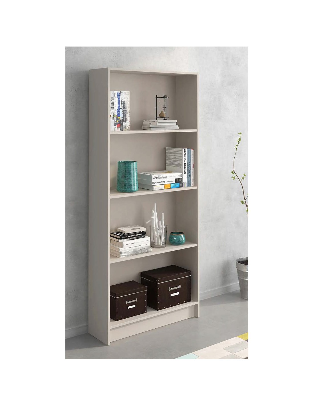 Estantería sencilla con cuatro huecos. La estantería está fabricada con tablero melamínico y herrajes metálicos.