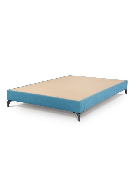 Base tapizada 18 cm con esquinas rectas y base tapizada en 3D. Estructura maciza madera pino. Se fabrica en tejido polipiel y anti manchas, ambos tejidos disponen de amplia variedad de colores diferentes a elegir. Se debe indicar en los comentario en el momento de realizar el pedido. La base está disponible en 7 medidas: 90, 105,135, 150, 160, 180 y 200cm. Las medidas de 160, 180 y 200cm de ancho se fabrican en dos mitades unidas. Patas disponibles en cromo o negro mate, indicar en comentarios en el momento de hacer el pedido