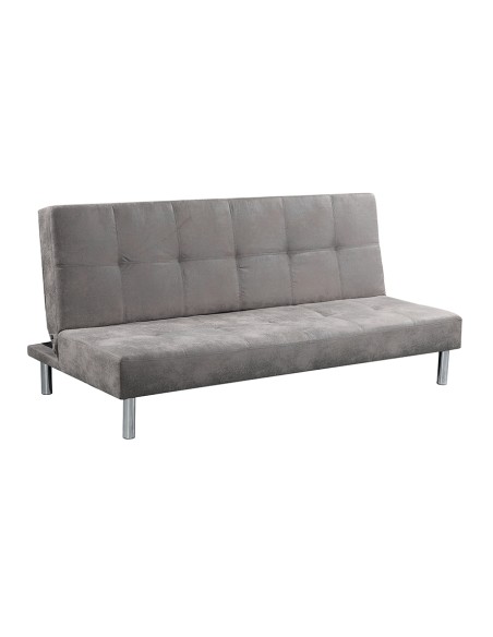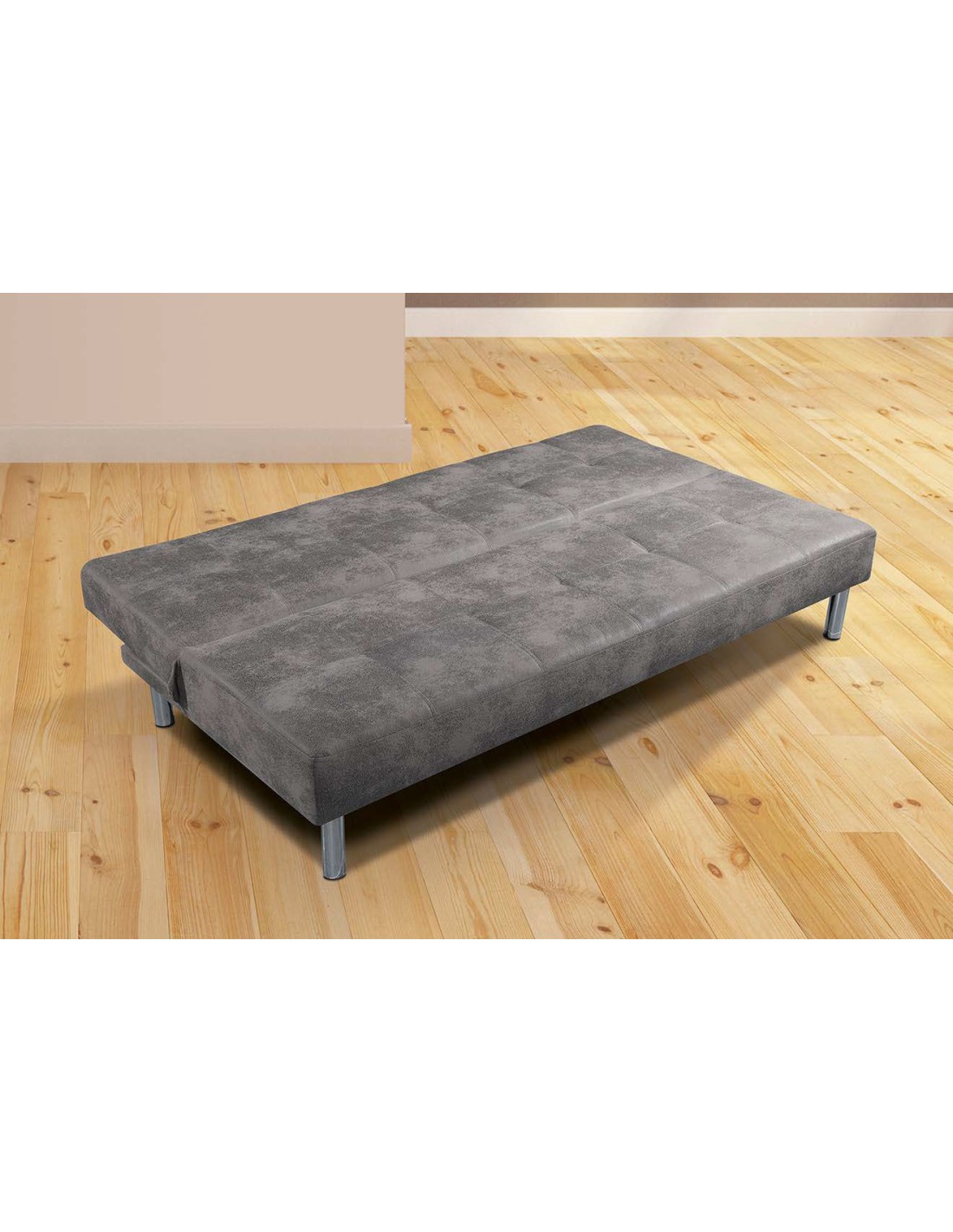 Sofá cama clic-clac con patas cromadas. Tejido microfibra antimanchas a elegir en color cemento y piedra. Gracias a su reducido tamaño es ideal para apartamentos pequeños o habitaciones para disponer de un sofa y tener siempre disponible una cama extra.