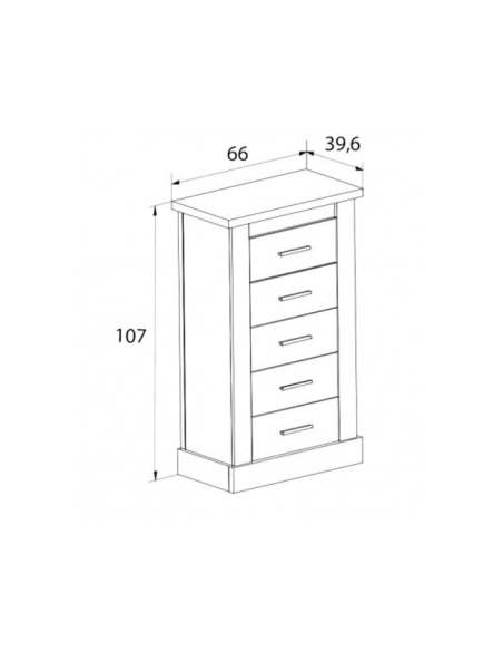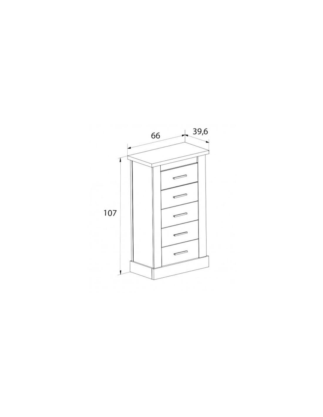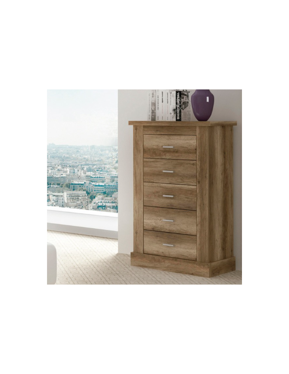 Sinfonier de la serie Chellén. Dispone de cinco cajones. Ideal para combinar con el resto de productos de la serie. Se puede añadi el mural con luna aparte. Mueble KIT