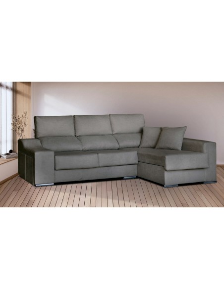 Chaiselongue modelo Brasil. Este modelo es muy practico y funcional debido a sus asientos extra extensibles de carro y respaldos reclinables.. Muy cómodo y amplio para descansar, se puede usar tanto como sofá como cama. Tiene los brazos siesta. Tapizado en microfibra algodonada anti manchas. Disponible en 3 colores: CEMENTO, PIEDRA y PLOMO.