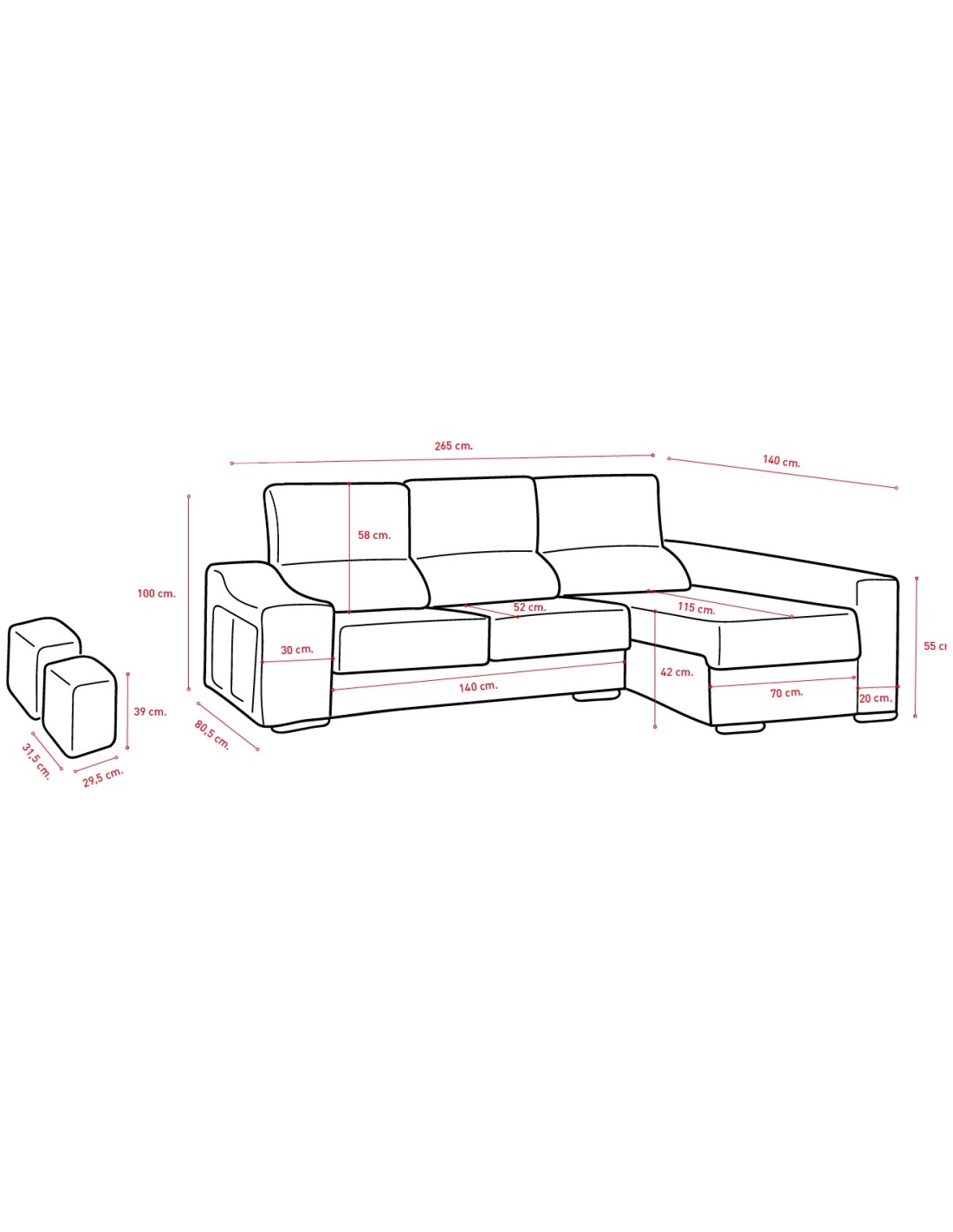 MEDIDAS: Alto 102 cm* Ancho 250cm - Profundidad 90cm - brazo chaiselongue 150 cm.
