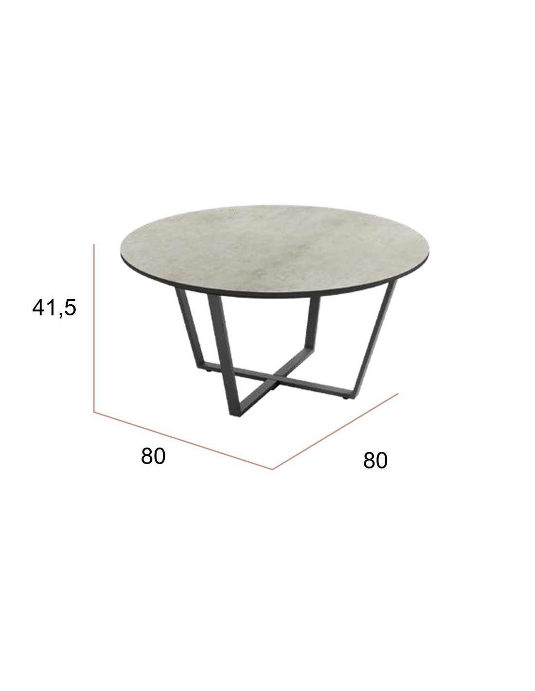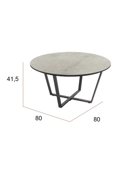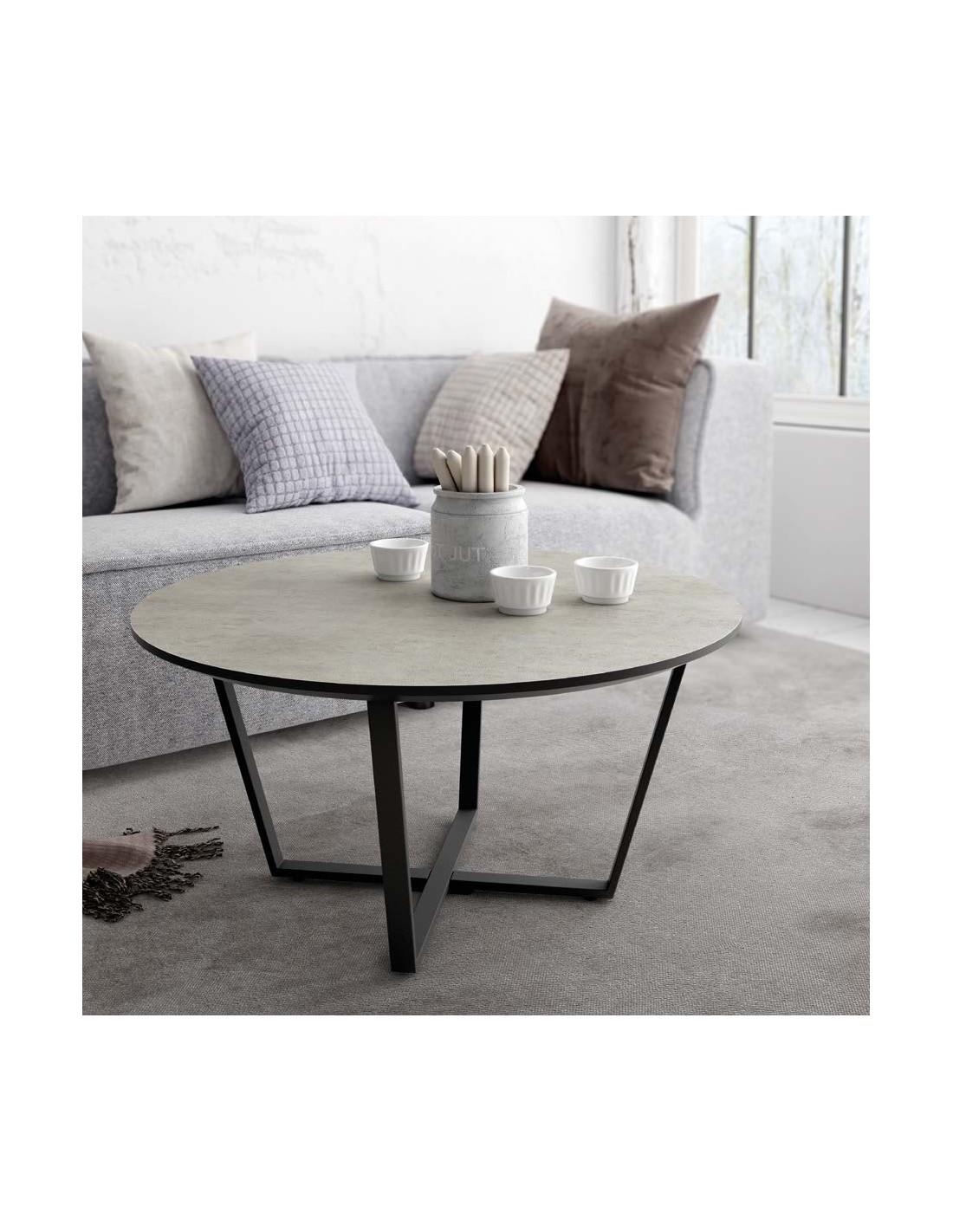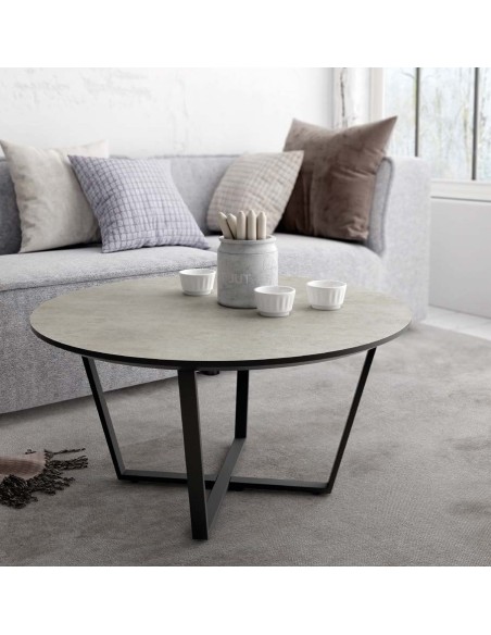 Mesa de centro redonda. Patas metálicas negras y sobre biselado de Ø80 cm y 25 mm de espesor en 3 acabados diseño piedra.