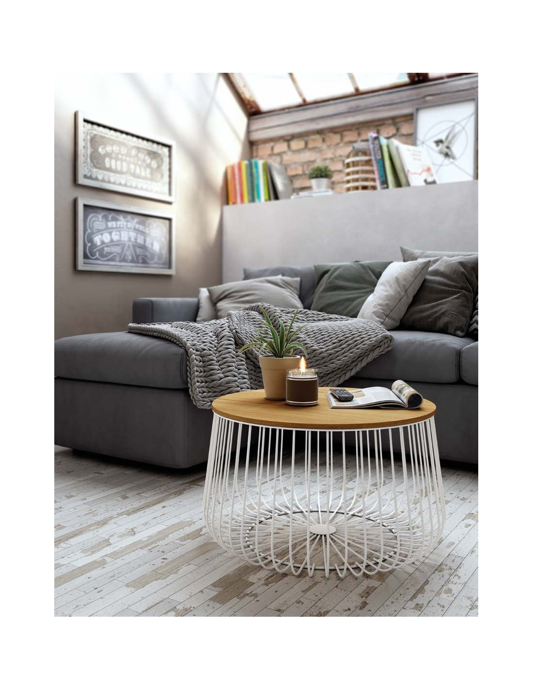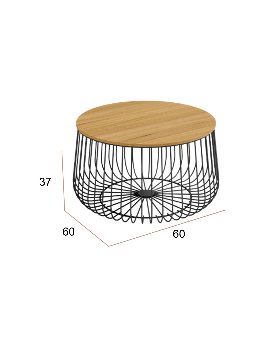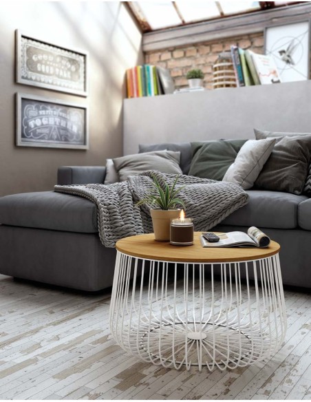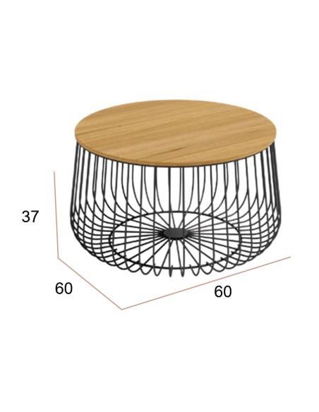 Mesa de centro redonda Ø60 cm con estructura metálica y sobre de tablero a elegir en madera, blanco o negro.