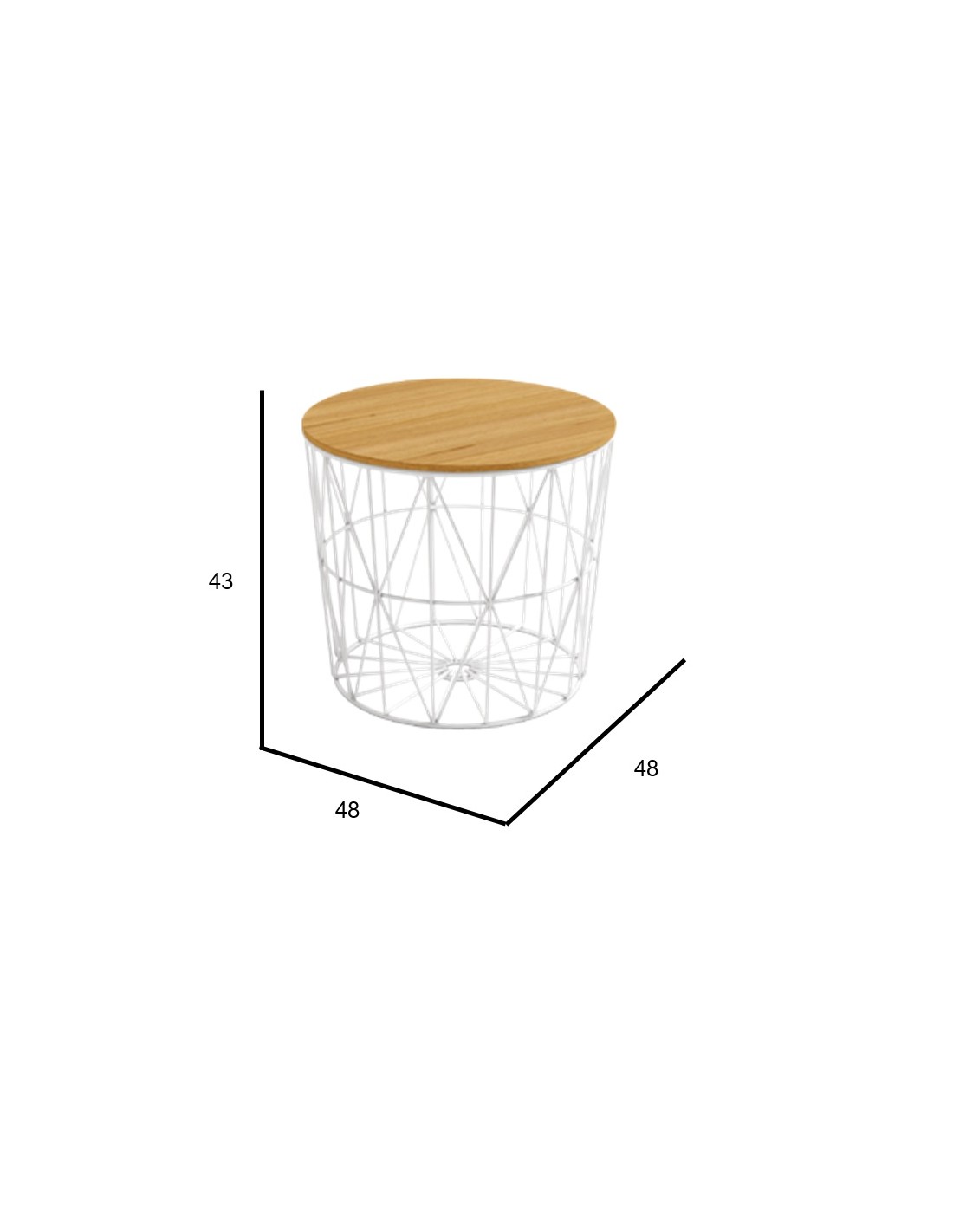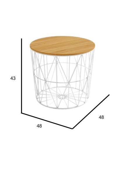 Mesa de auxiliar redonda Ø48 cm con estructura metálica y sobre de tablero.