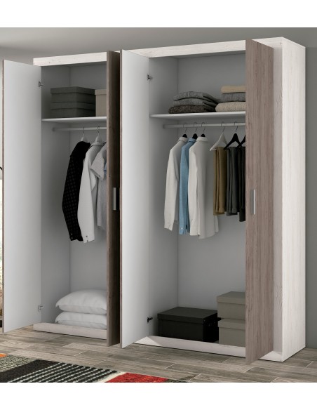 Armario de cuatro puertas batientes con gran capacidad. Disponible en TRES combinaciones de colores: cambrian-blanco, cambrian-grafito, puccini-textil y andersen pino-gris. Un gran producto con un precio inmejorable. Armario en formato KIT.