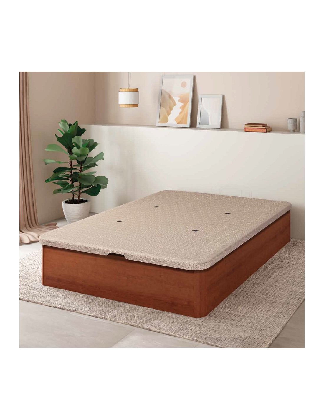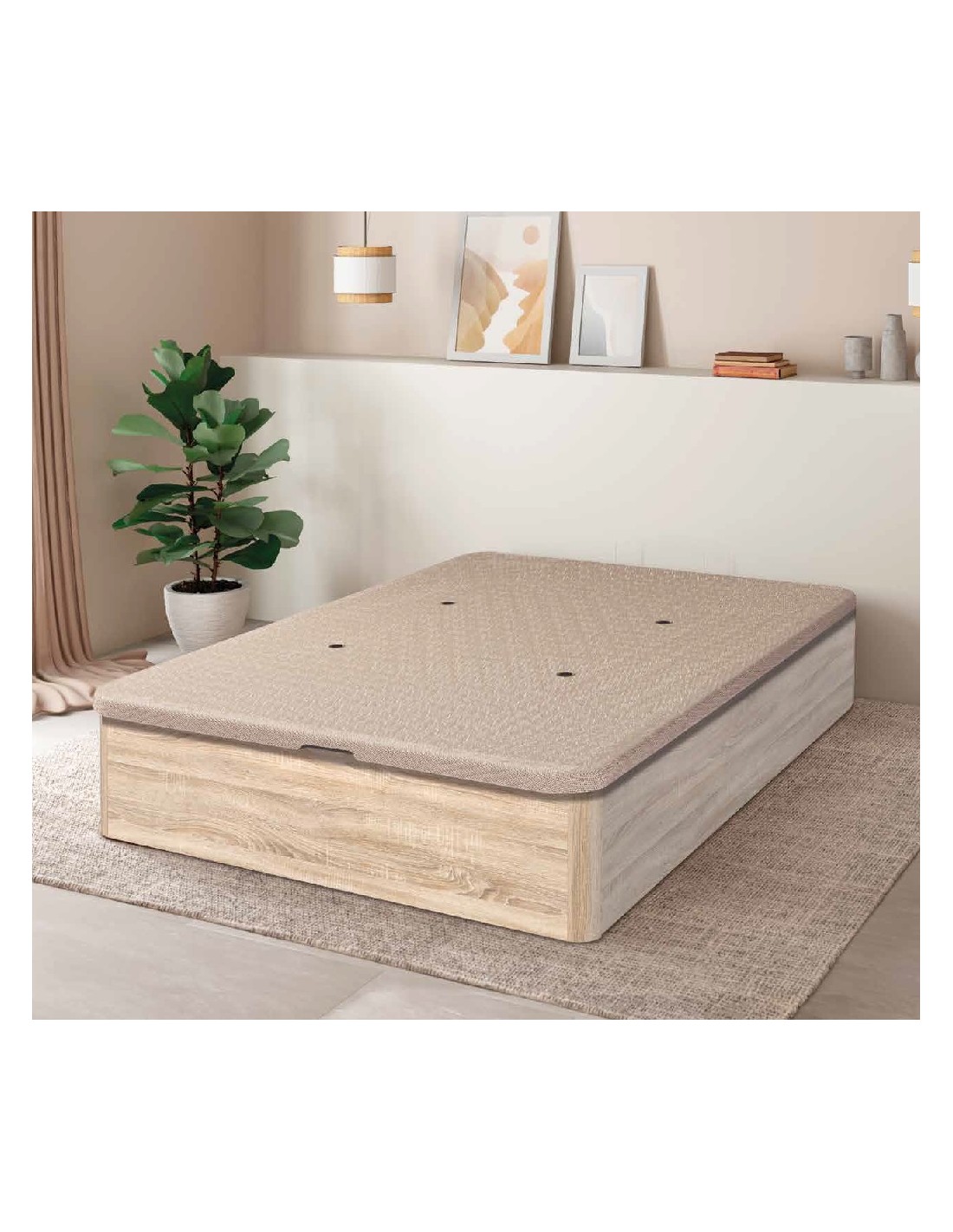 - Cajón canapé de gran capacidad con patas en las esquinas y apertura sistema exclusivo FINGER IN de apertura frontal, que nos permite prescindir del tirador tradicional.