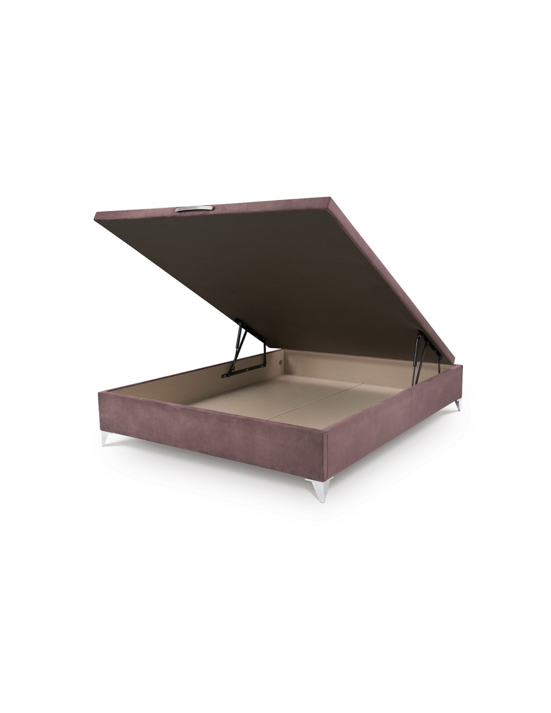 TAPA: Sistema de apertura mediante pistones de gas. Tapa con refuerzo metálico anti-curva evitando hundimientos en la base. Tapa metálica con tapizado en tejido elegido en el borde acolchada con tapizado 3D transpirable. Tirador madera de gran calidad para facilitar su apertura (Cerezo, Blanco, negro y Plata). Lleva tope sujeta-colchón evitando así que el colchón se mueva al abrir el canapé.