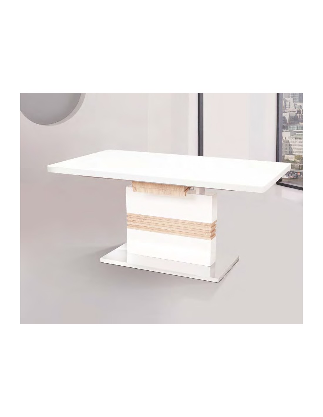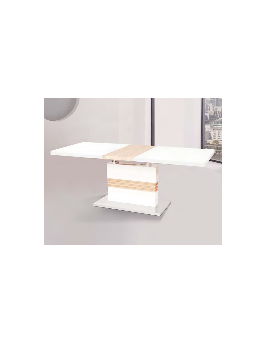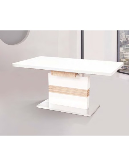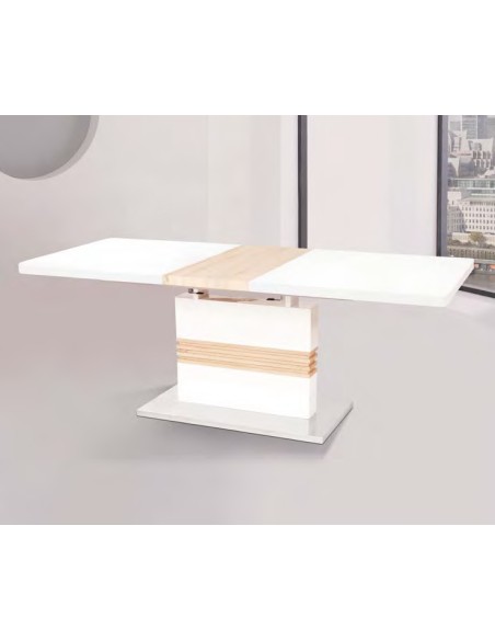 Mesa extensible de calidad, que combina el blanco brillo con el cambrian. Con un diseño exclusivo, es ideal para completar su ambiente