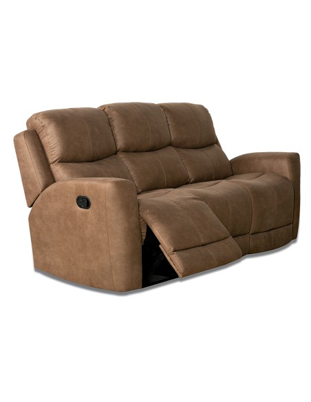 Sofá relax 3 plazas Tucson con sistema de palanca manual en los laterales. Estructura de madera seleccionada con la máxima resistencia. Asineto espuma densidad de 25Kg suave con muelles ensacados. Asiento central fijo, laterales relax con palanca.
