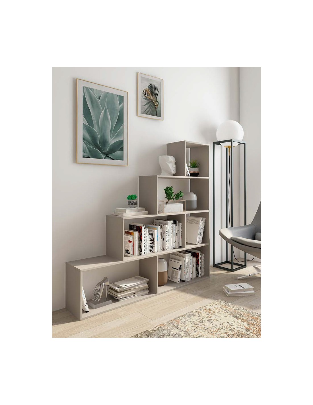 Estantería modelo ROSA, es tipo escalera, ideal para organizar y separar espacios. Disponible en color BEIGE O ROBLE. MUEBLE KIT.