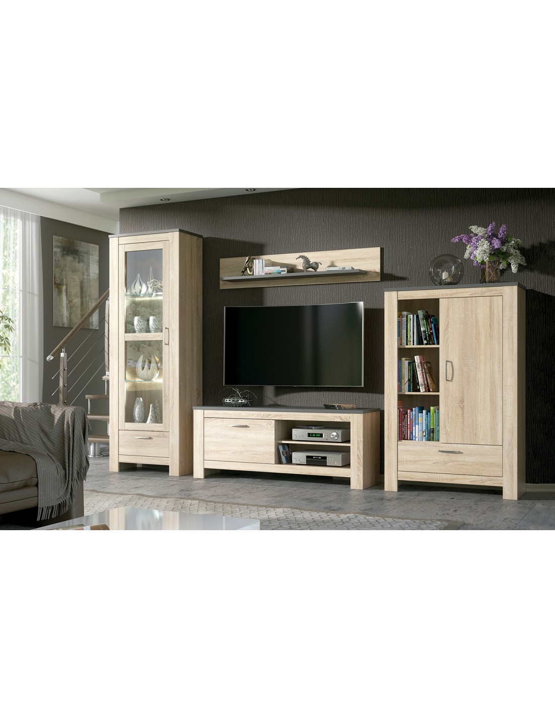 Composición salón FRIDA de 300 m. Esta composición mezcla el estilo provenzal con líneas rectas sencillas, le dará a tu salón la distinción que merece. Disponible en tres combinaciones: ANDERSEN PINO-GRIS, CAMBRIAN-GRAFITO Y CAÑÓN. Mueble en formato KIT.