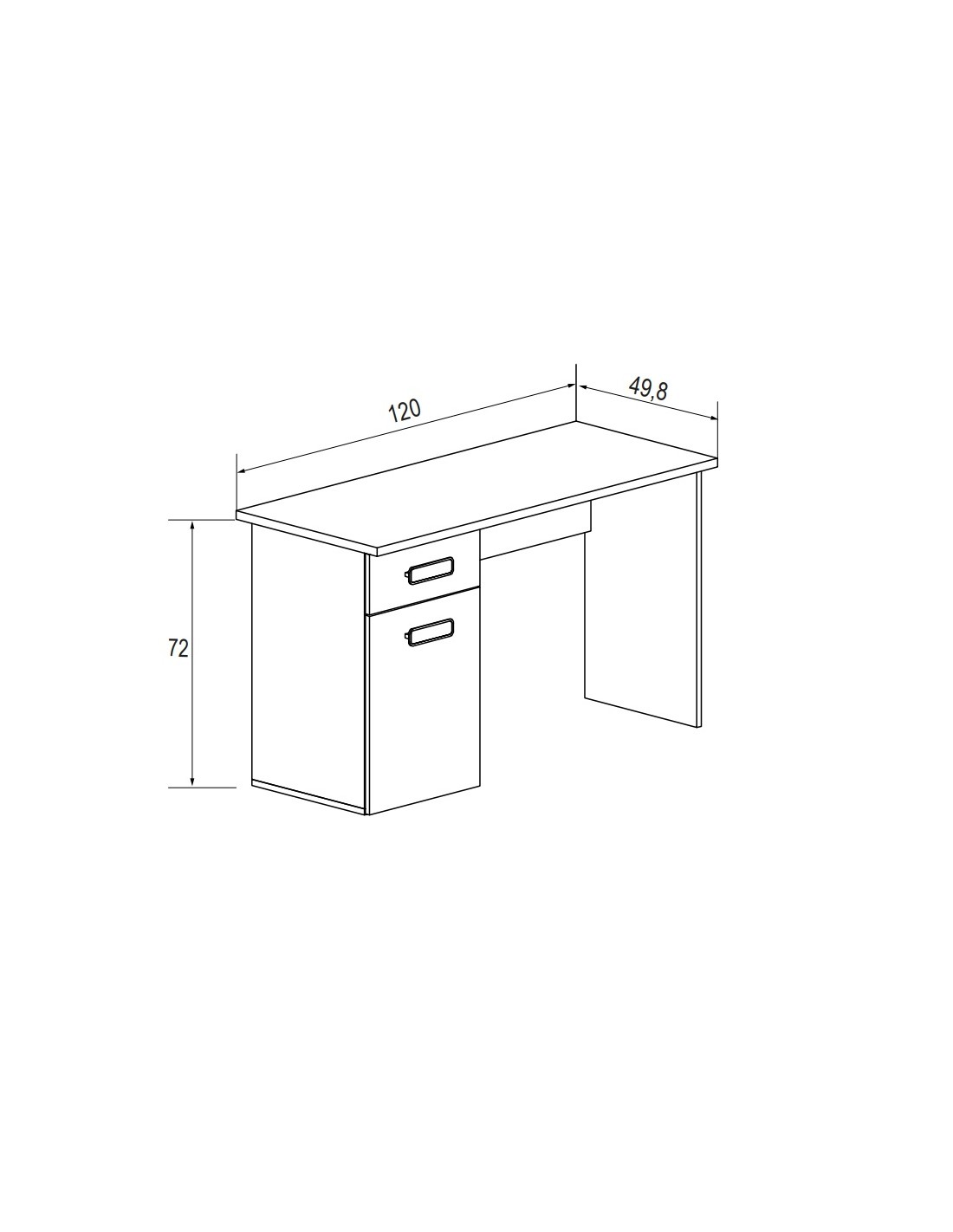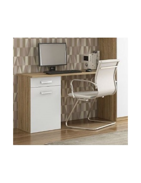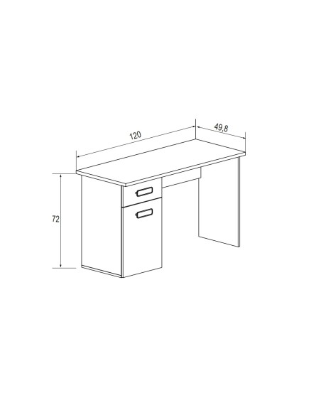 Mesa estudio de 120*50cm compuesta por encimera, lateral y cajón con puerta para almacenar lo que sea necesario. Ideal para completar con los dormitorios de la serie champion. MUEBLE FORMATO KIT.