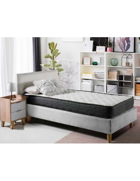 Colchón SIMOES tiene un núcleo HR alta densidad 23 kg/m3 de 12 cm de grosor. Es ideal para camas infantiles o para la cama inferior de una cama nido, debido a su poca altura. Disponible en medida 90*190cm, 105*190cm, 135*190cm y 150*190cm.