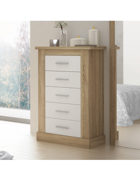 Sinfonier de la serie CROACIA Cambrian blanco. Dispone de cinco cajones. Ideal para combinar con el resto de productos de la serie. Se puede añadir el mural con luna aparte. Mueble KIT
