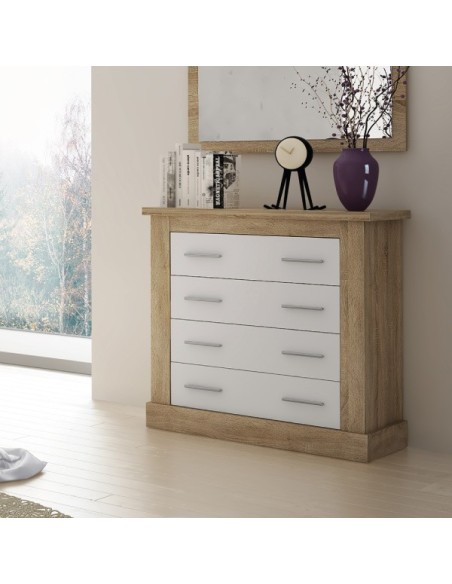 Cómoda de la serie Chellén Cambrian blanco.. Dispone de cuatro cajones. Ideal para combinar con el resto de productos de la serie. Mueble KIT