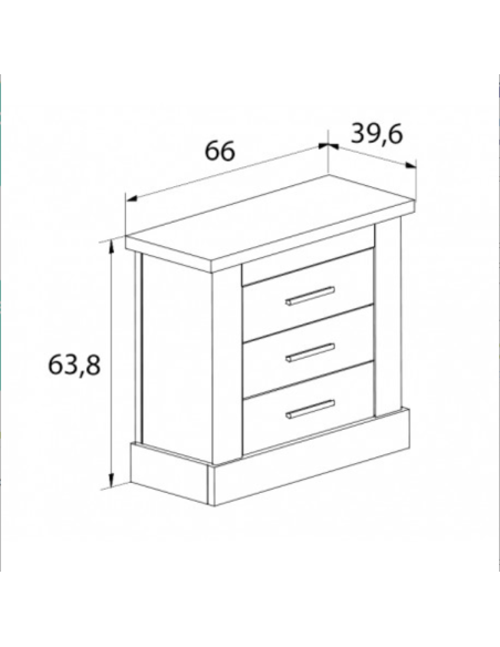 Mesita de noche de la serie Croacia. Dispone de tres cajones. Ideal para combinar con el resto de productos de la serie. Mueble KIT