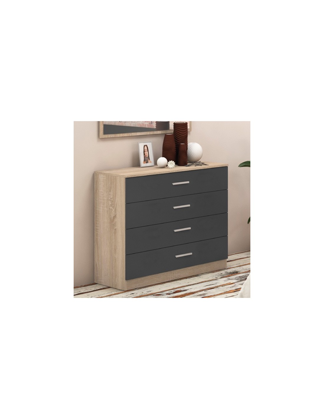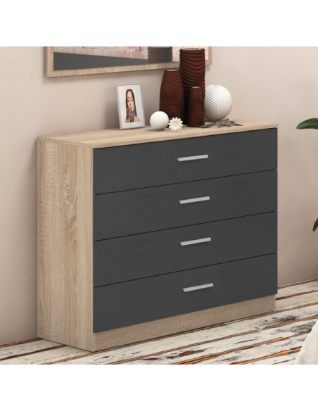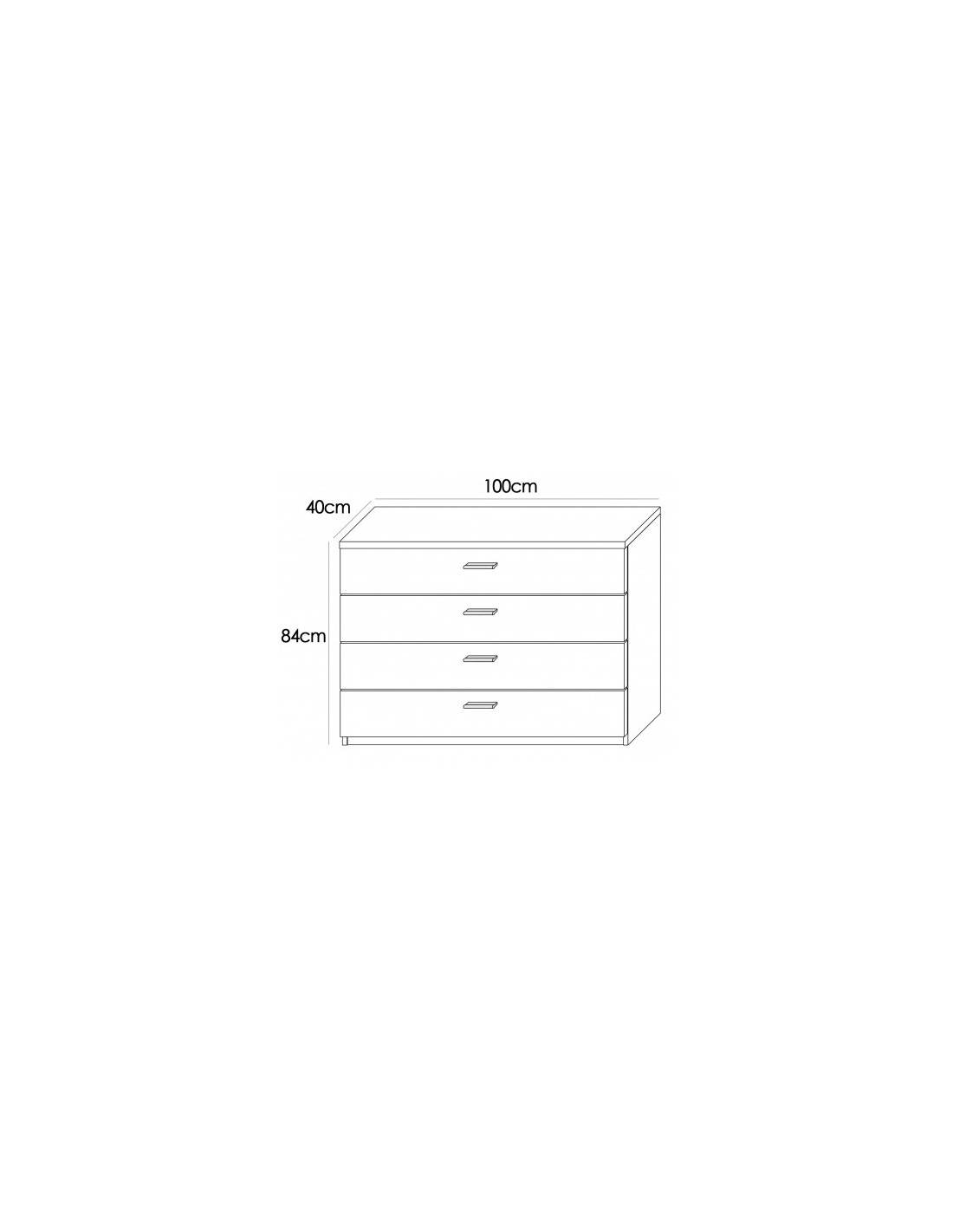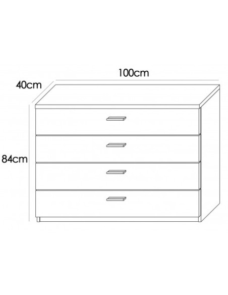 Cómoda modelo Mika de 100cm, ideal para el dormitorio. Es fuerte, resistente y amplia. Disponible en tres colores: Andersen pino-gris, Cambria-Blanco y Cambria-Gráfito. Mueble KIT.