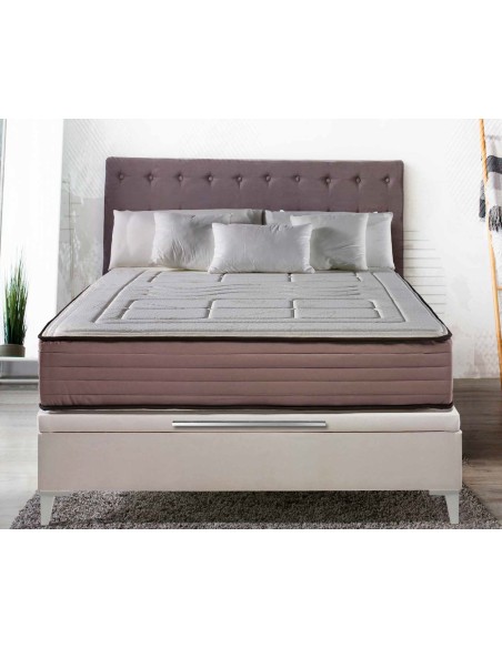 - Núcleo muelle ensacado 680 muelles recubiertos por tejido TST alto gramaje + BOX HR 33kg/m3 ensamblado con tejido TST superior e inferior + plancha 2 cm ECONATUR alta densidad.