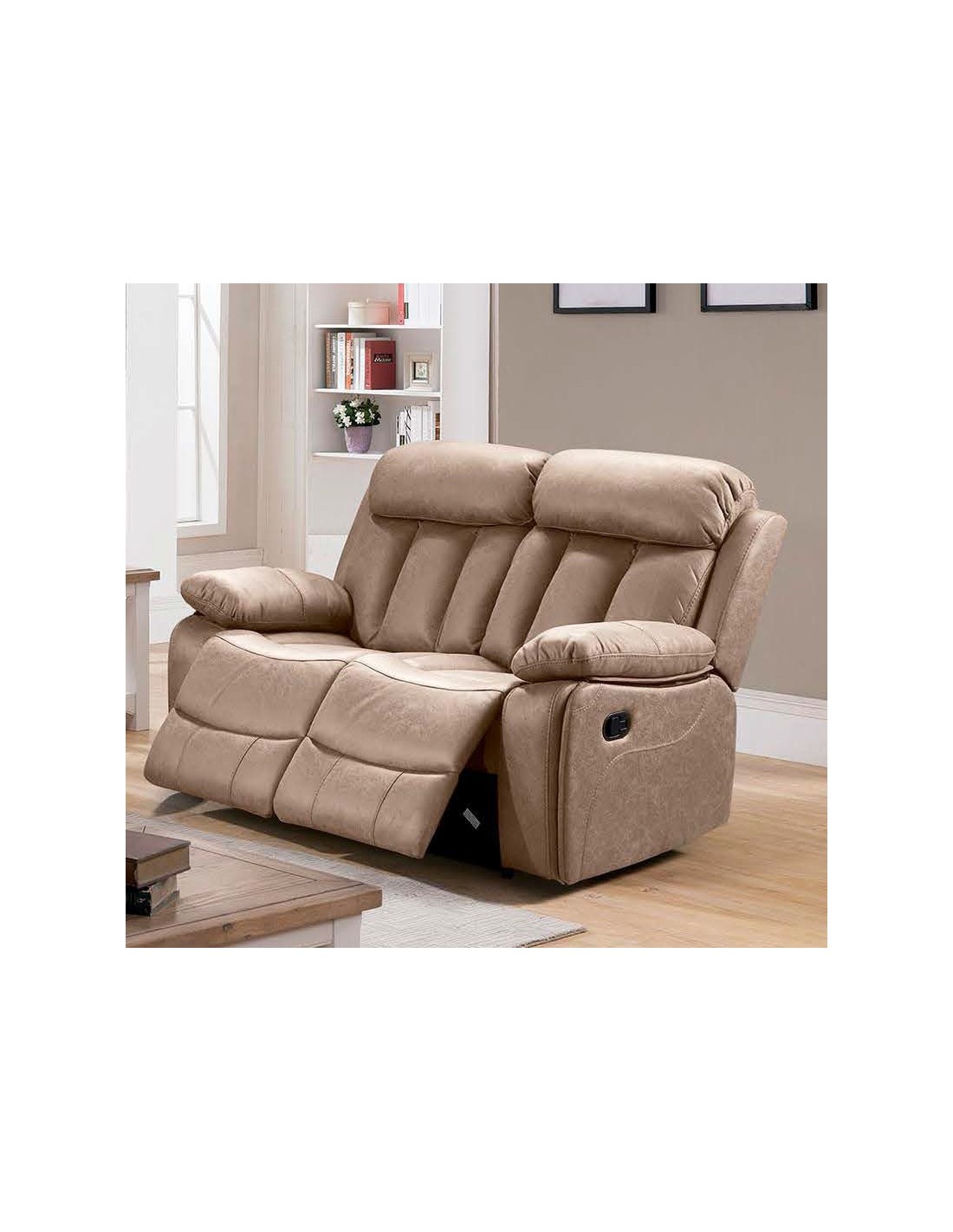 Sofá relax Madrid 2 plazas con sistema de palanca manual en ambos laterales. Estructura de madera maciza de máxima resistencia. Asientos espuma densidad 25 kg suave con muelles ensacados.