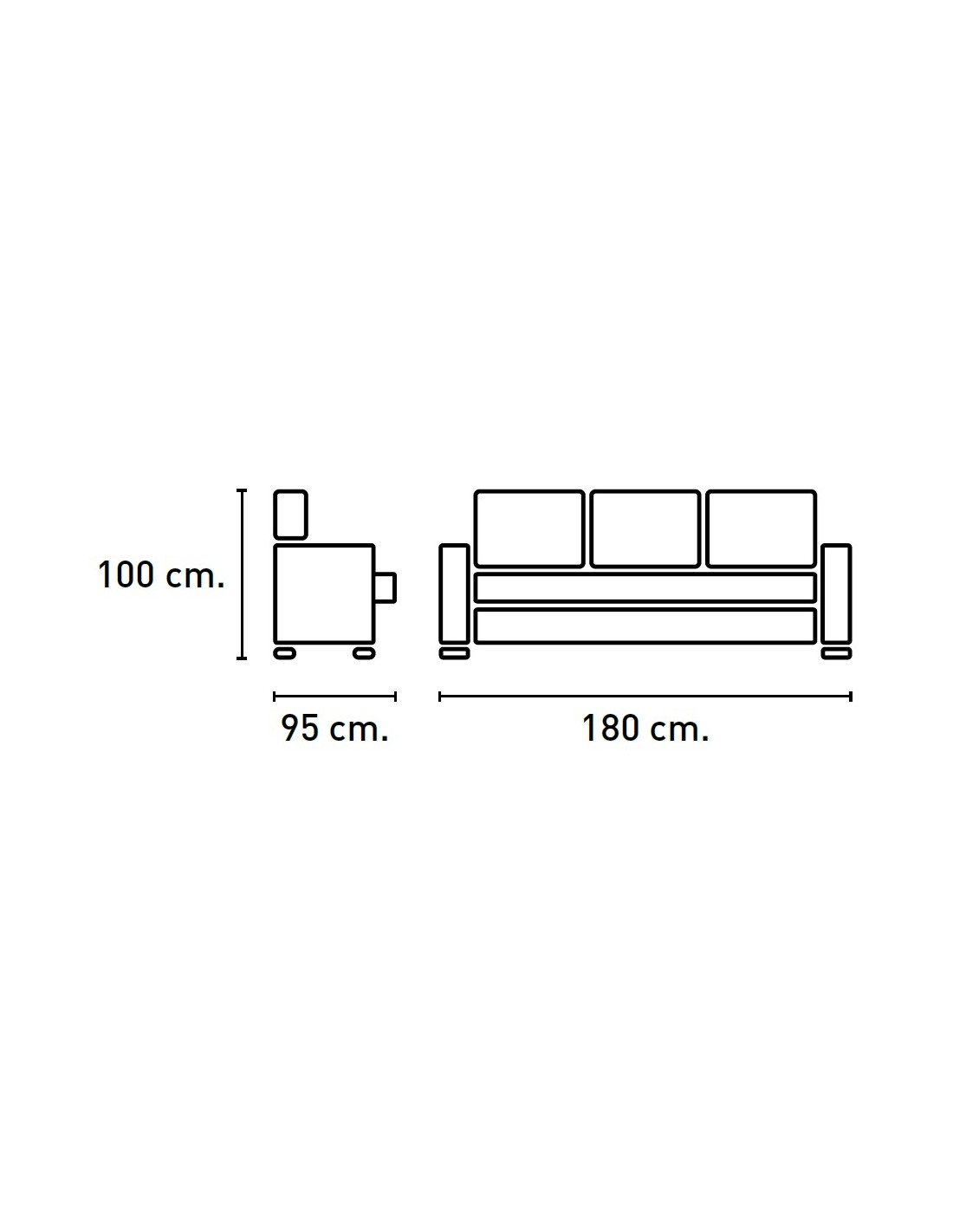 CARACTERÍSTICAS: Estructura de madera maciza de pino. Asientos espuma densidad 28 kg. suave con muelles ensacados. Sofá 3 plazas con asientos laterales relax y asiento central fijo.