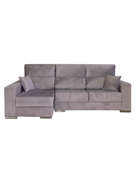 CHAISELONGUE MORERA mide 252cm, tiene los respaldos reclinables y asientos fijos, lleva dos cojines de regalo. Disponible en tejido en color beige y gris oscuro. Se puede elegir el brazo al lado derecho o izquierda.