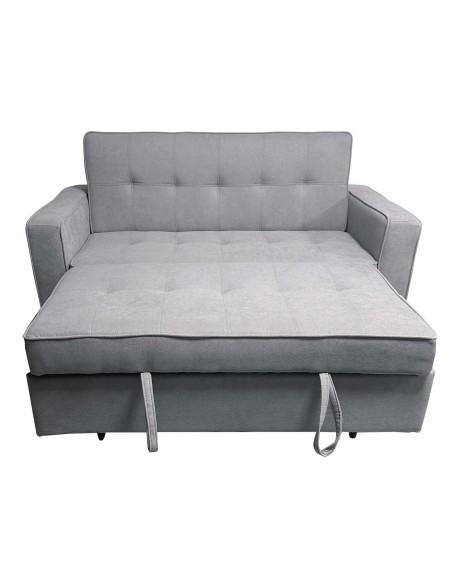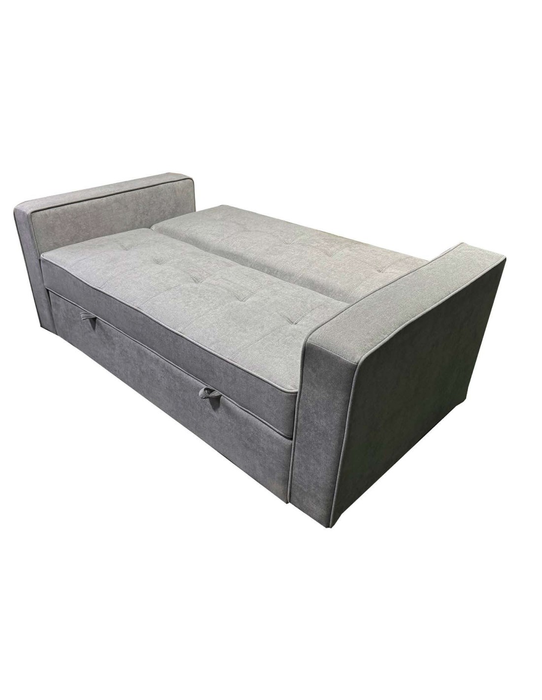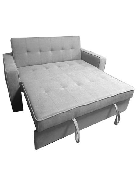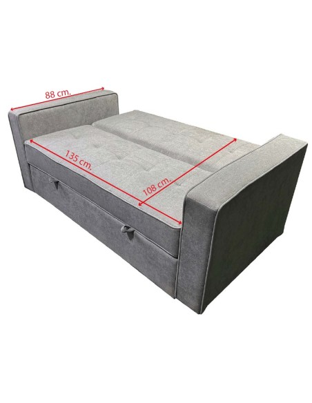 Sofá convertible en cama. Dispone de estructura de madera. Los asientos son de espuma. Posee un mecanismo para la apertura de tipo clic-clac en cama superior y la cama inferior es extraíble.