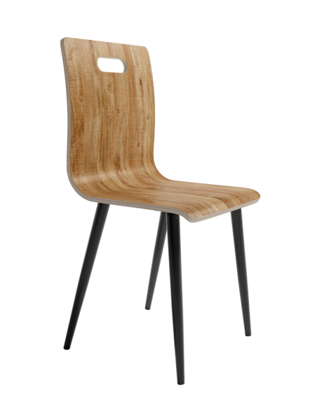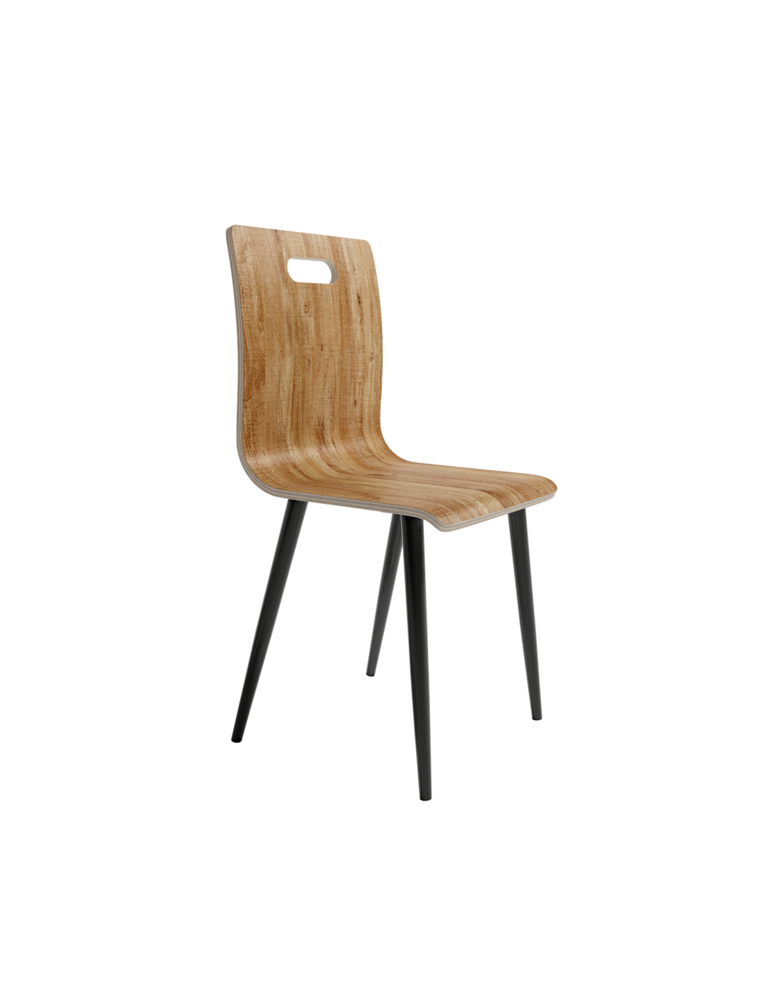 La Silla morfeo presenta un diseño sobrio y funcional, ideal para ambientes modernos, rústicos o industriales. Su estética es limpia, con un aire natural que encaja perfectamente en comedores o cocinas actuales. Posee un asiento y respaldo fabricados en tablero de contrachapado. Dispone de un diseño ergonómico con una ligera curvatura en el respaldo para favorecer una postura cómoda. Las patas metálicas negras, finas y resistentes, que contrastan con el acabado en madera, aportando un toque industrial sin perder ligereza visual. La estructura sencilla y robusta es muy adecuada para el uso diario. Posee un estilo rústico moderno o nórdico-industrial fácil de combinar con mesas de madera clara, estructuras negras o incluso superficies de piedra.