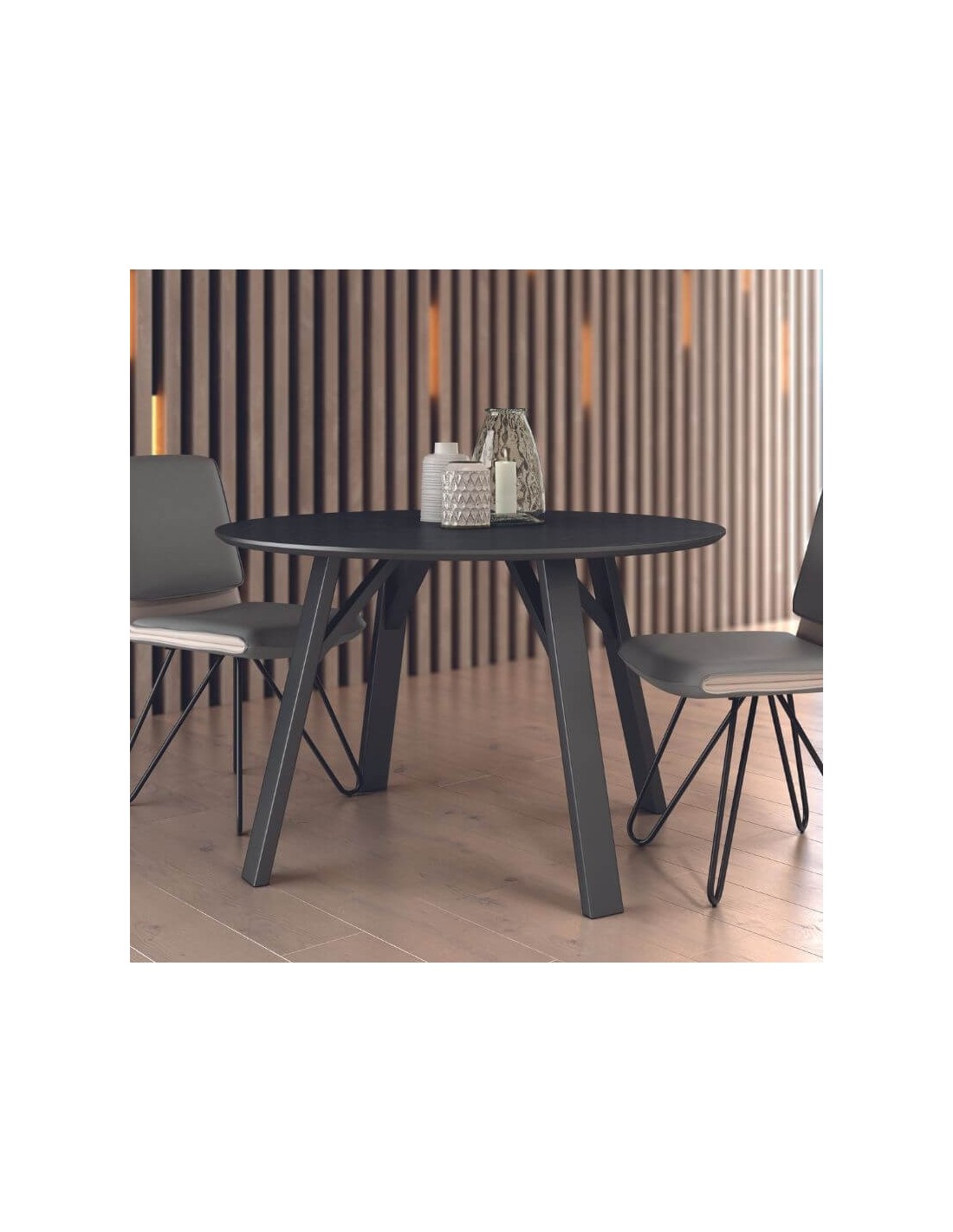 La mesa de comedor Baltic destaca por su diseño moderno, minimalista y elegante, ideal para espacios que buscan un equilibrio entre estilo y funcionalidad. Se trata de una mesa fija con una estructura metálica negra que proporciona gran estabilidad y un aire industrial. Realizado en MDF biselado de 22 mm está acabado en un diseño tipo piedra, que simula con realismo la textura y el color del mármol, aportando sofisticación y frescura. El formato redondo favorece la interacción entre comensales y se adapta fácilmente a espacios de distintos tamaños, resultando ideal tanto para cocinas como para comedores modernos. Su construcción sólida y sus materiales garantizan resistencia y durabilidad en el uso diario. Esta mesa combina una presencia estética y personalidad.