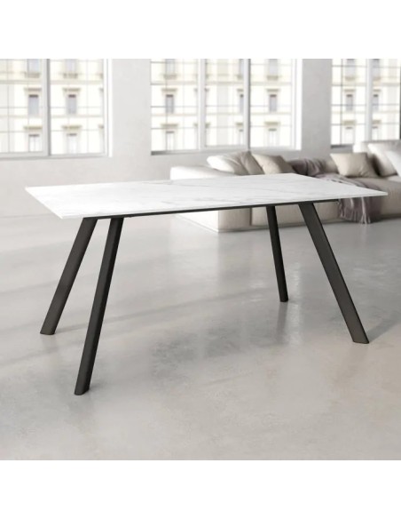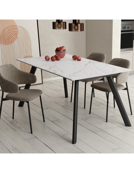La mesa de comedor fija Omán destaca por su diseño moderno y su excelente resistencia. Su estructura metálica, disponible en acabado marfil o negro, garantiza estabilidad y durabilidad en el uso diario. El sobre está fabricado en porcelánico de 12 mm, un material de alta calidad que ofrece una gran resistencia al calor, rayaduras y manchas, ideal para comedores muy utilizados. Su acabado en diseño piedras aporta un toque natural y elegante que encaja perfectamente en estilos contemporáneos, industriales o nórdicos. Gracias a la combinación de materiales robustos y líneas limpias, la mesa Omán se convierte en una pieza funcional y decorativa para cualquier hogar, aportando estilo sin renunciar a la practicidad.