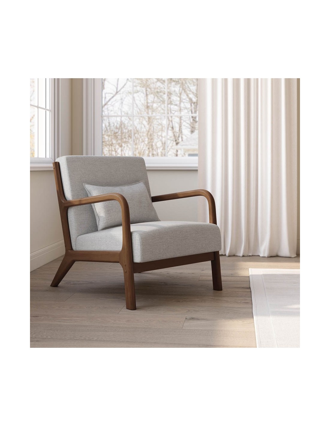 La butaca UME combina estilo, comodidad y calidez en una pieza que realza cualquier ambiente. Su diseño envolvente cuenta con respaldo y asiento tapizados, ofreciendo una experiencia de confort ideal para momentos de relax. La estructura de madera, visible en sus patas robustas y acabados naturales, aporta estabilidad y un toque orgánico que armoniza con decoraciones tanto modernas como clásicas. Esta butaca es perfecta para rincones de lectura, salones o dormitorios, donde su presencia elegante y su diseño ergonómico se convierten en protagonistas del espacio. Una pieza pensada para disfrutar con estilo.