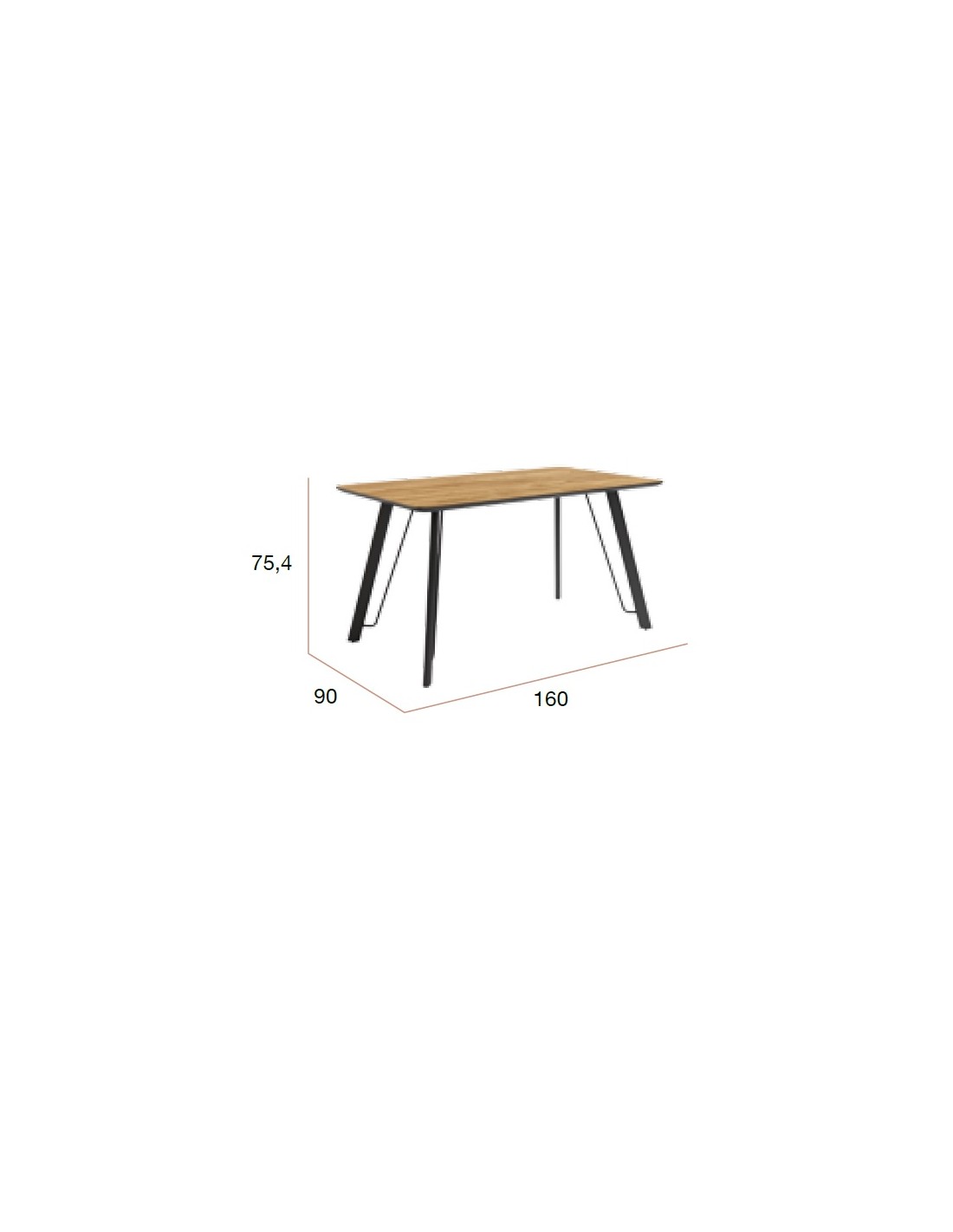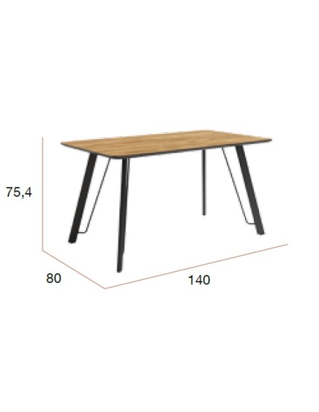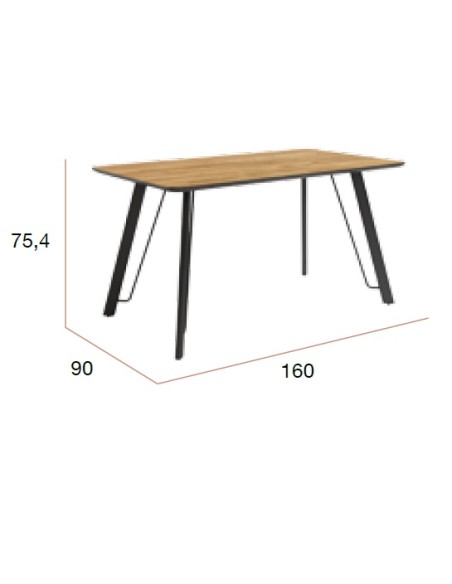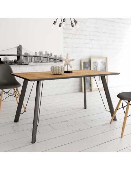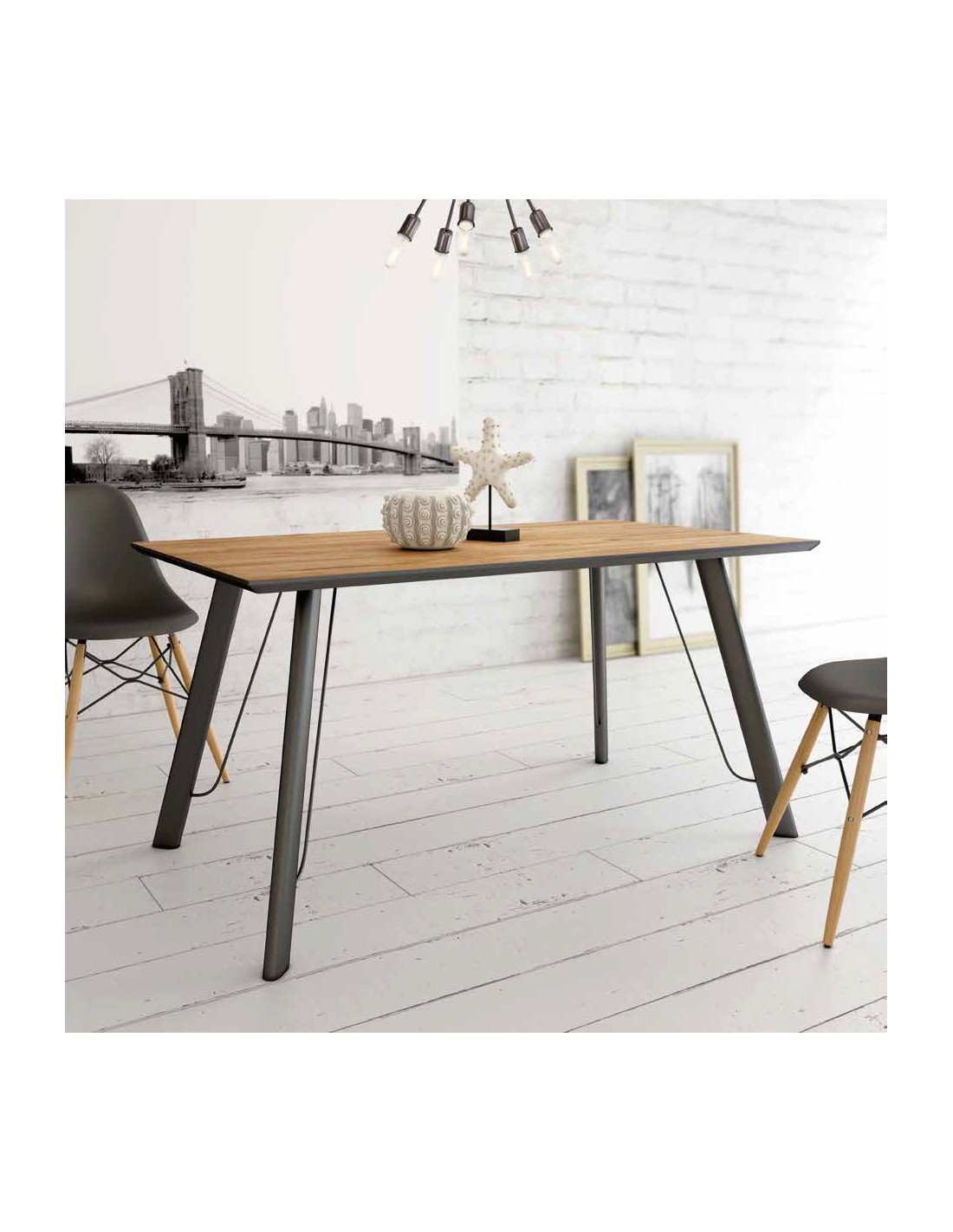 Mesa de comedor fija. Patas metálicas negras y sobre biselado de 22 mm de espesor en 5 tonos y dos tamaños. 140x80cm y 160x90cm.
