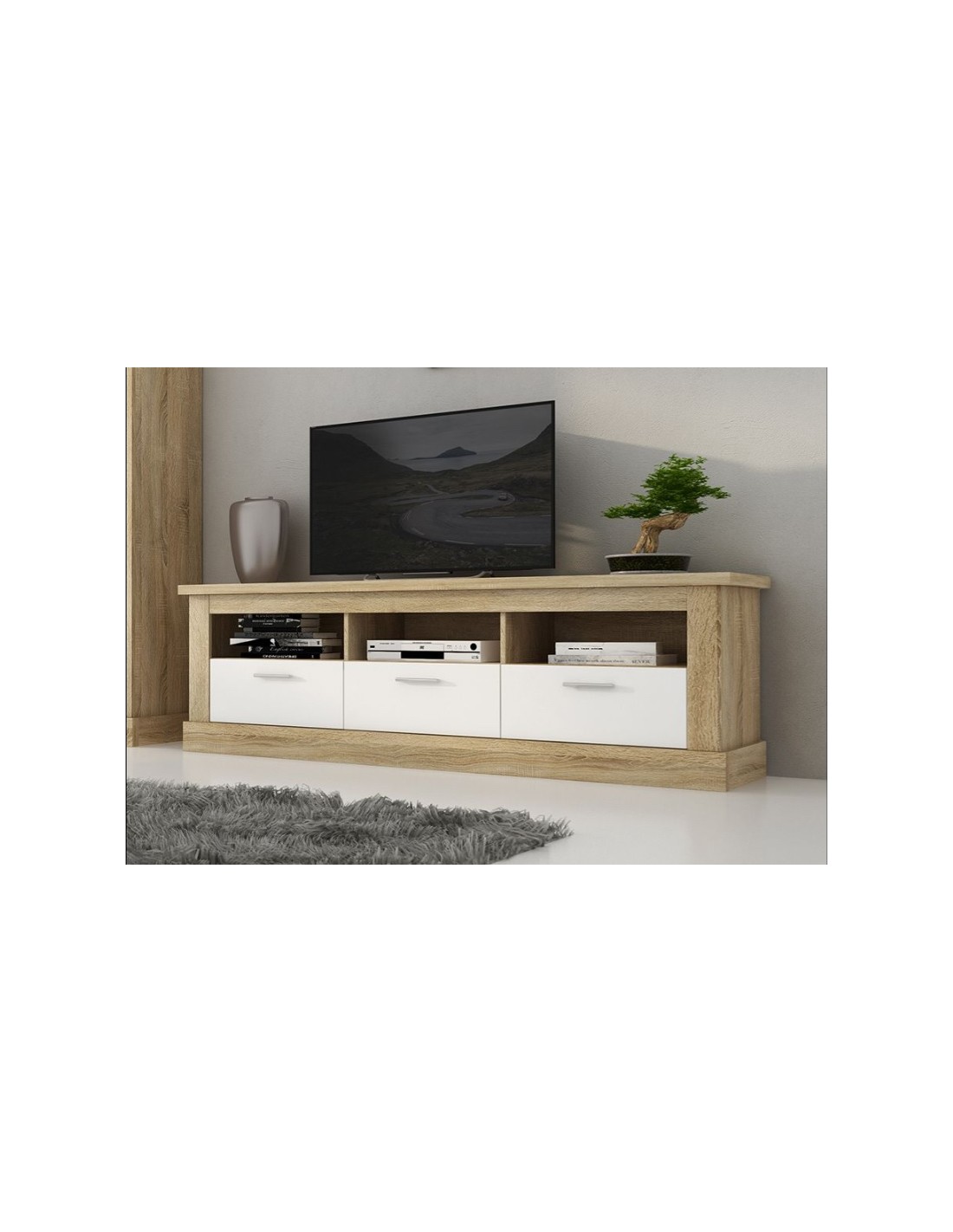 Mueble tv 180cm, cañón, compuesto por 3 cajones y 3 huecos. Trasera TV opcional.