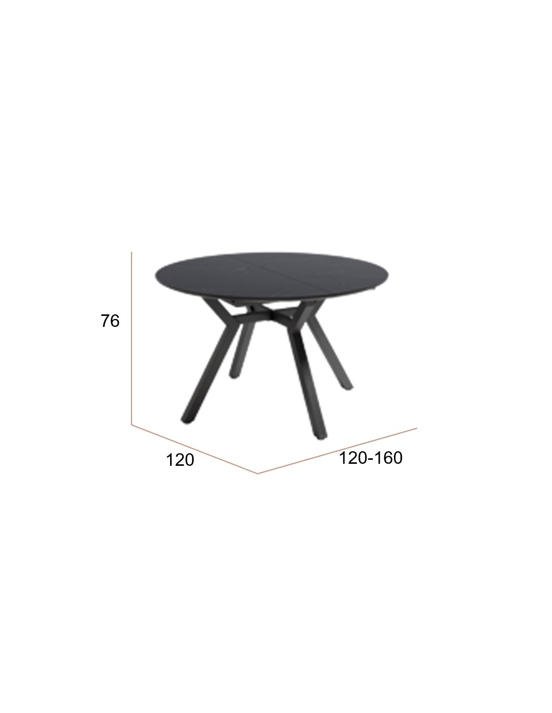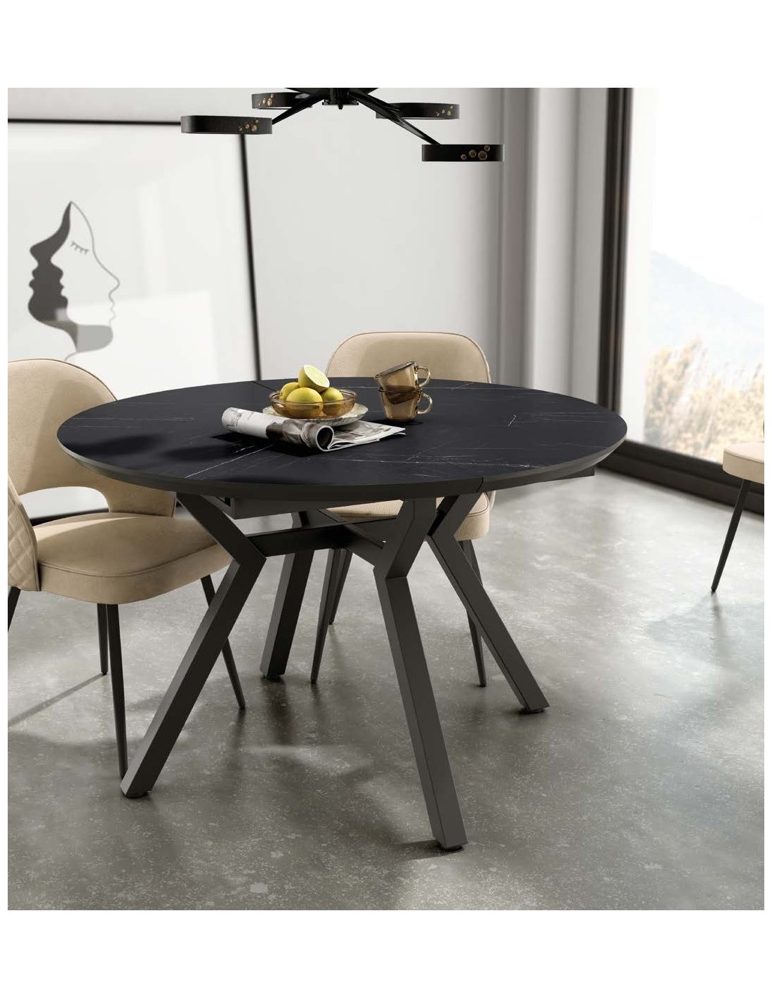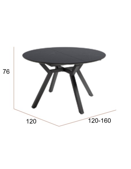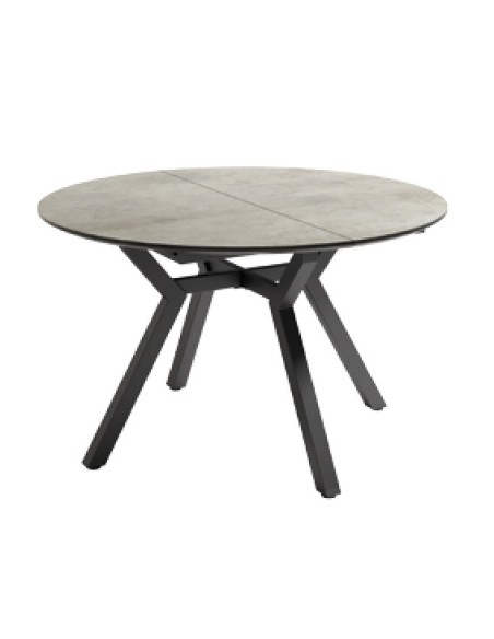 Mesa de comedor extensible. Patas metálicas negras y sobre Ø120 biselado de 25 mm en 3 acabados diseño PIEDRA.