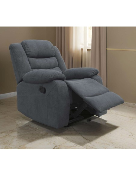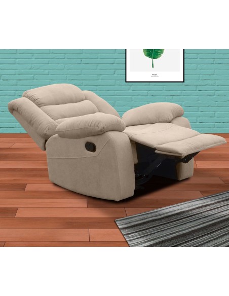 CARACTERISTICAS: - Estructura de madera maciza de pino. Estructura de madera maciza de pino. Asientos espuma densidad 28 kg. suave con muelles ensacados. Tapizado: tela microfibra de gran calidad. Relax manual mecanismo apertura de palanca